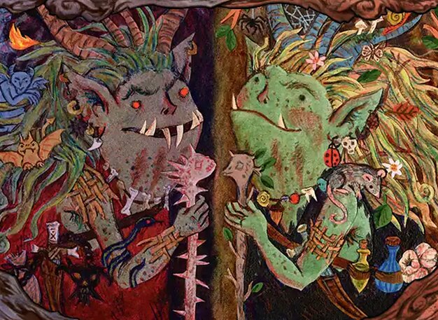 Choose two â ⢠Create a token that's a copy of target Goblin you control. ⢠Creatures target player controls get +1/+1 and gain haste until end of turn. ⢠Destroy target artifact or creature. ⢠Target player mills five cards, then puts each Goblin card milled this way into their hand.