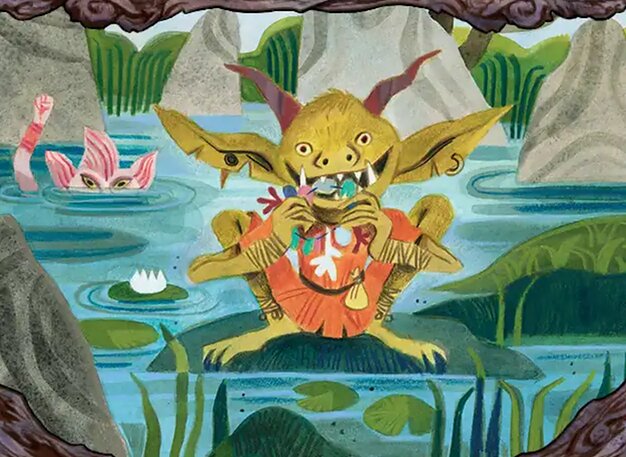 When this creature enters, target opponent reveals X cards from their hand, where X is the number of Goblins you control. You choose one of those cards. That player exiles it. If an instant or sorcery card is exiled this way, you may cast it for as long as you control this creature, and mana of any type can be spent to cast that spell.